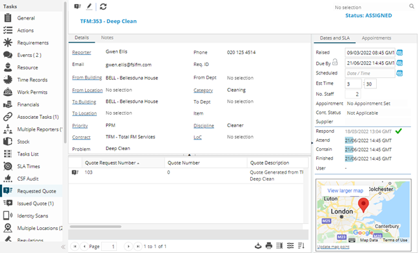 To add a new Requested Quote click Create quote from Task , to edit an existing Requested Quote click Edit