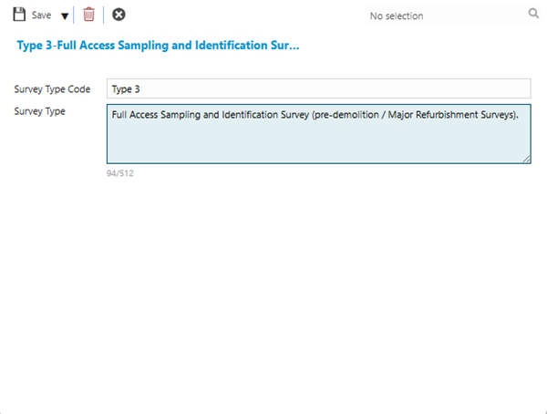 Settings > Asbestos > Survey Information > Asbestos Survey Types