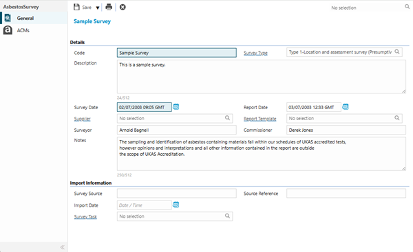Settings > Asbestos > Asbestos Surveys - ACMs