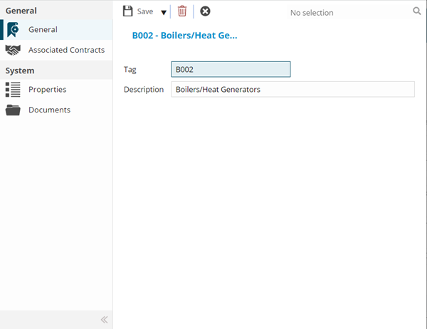 Complete the fields and click Save . Once the Asset Tag header has been completed and saved a sub navigation will appear to allow additional entities to be assigned.