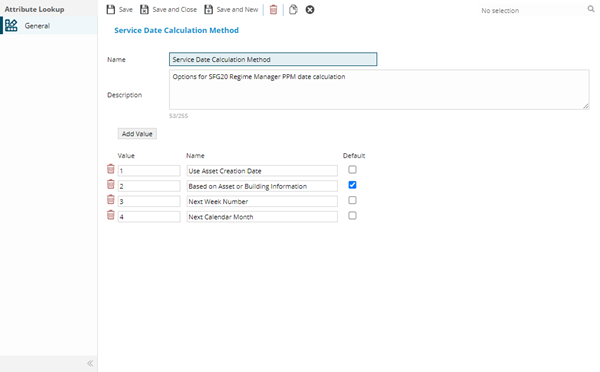 . A pop up window will appear which will allow the creation or amendment of a Attribute Lookup.