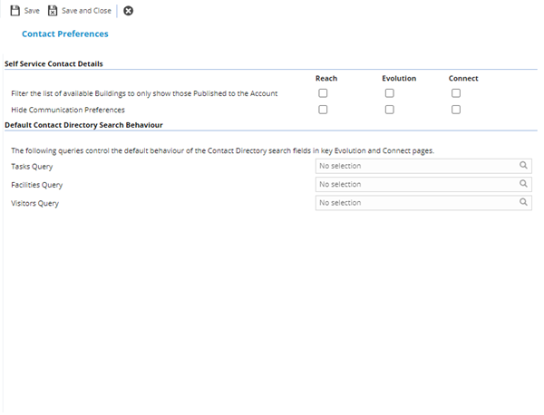 Administrators can use Queries to control the options shown to Users in the various fields and drop downs that list names in the Contact Manager. This feature can be used to filter out any unwanted Contacts (e.g. use a query to only include Contacts with a status of Active) or to enforce selection of Contacts based on attributes of the Account that is logged on (e.g. use a query that says the User will only see Contacts that are in the same Department or Building as them)