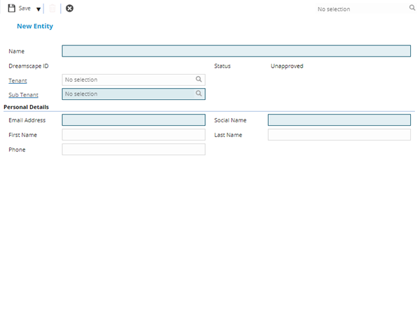Complete the fields and click Save. Once the MRI Dreamscape User header has been completed and saved a sub navigation will appear to allow additional entities to be created / assigned.
