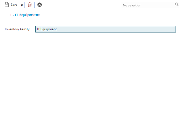 . A pop up window will appear which will allow the creation or amendment of a Inventory Family.