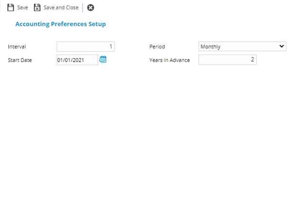 Accounting Preferences set up future Accounting Periods on mass to allow budgets to be set for Cost Centres.