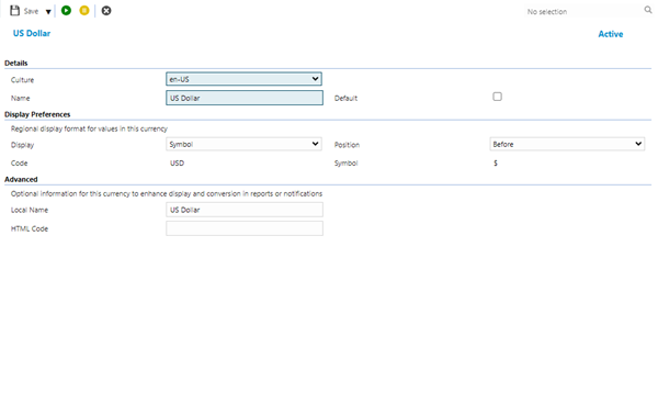 The link will open the Currencies grid. It is a grid view which can be searched, sorted and customised as normal.