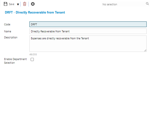 . A pop up window will appear which will allow the creation or amendment of a Recoverability Type.