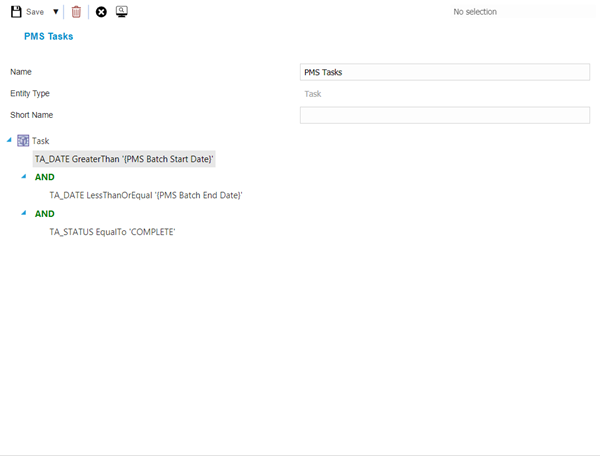 PMS Task Queries are used to gather groups of Tasks for use in PMS Batch runs and Ratchets. PMS Queries are built in the same way to system queries, however if being used for a Batch Run they must reference the {PMS Batch Start date} and {PMS Batch End Date}.