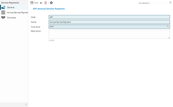 Service payments allow the set-up of both annual and monthly standard payments, these Service Payments are then bound to a Contract.