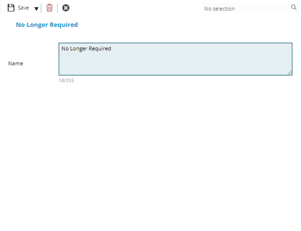 To add a new Quote Rejection Reason click New , to edit an existing Quote Rejection Reason click Edit