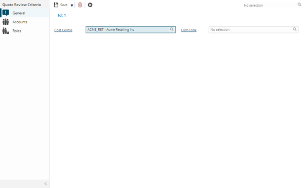 Once the Quote Review Criteria header has been completed, the Accounts or Roles to undertake the review must be assigned.