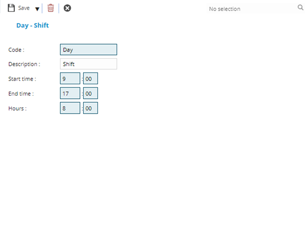 . A pop up window will appear which will allow the creation or amendment of a Shift.