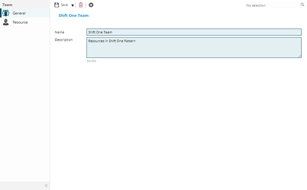 Resources can be grouped together in Teams for filtering and reporting purposes.