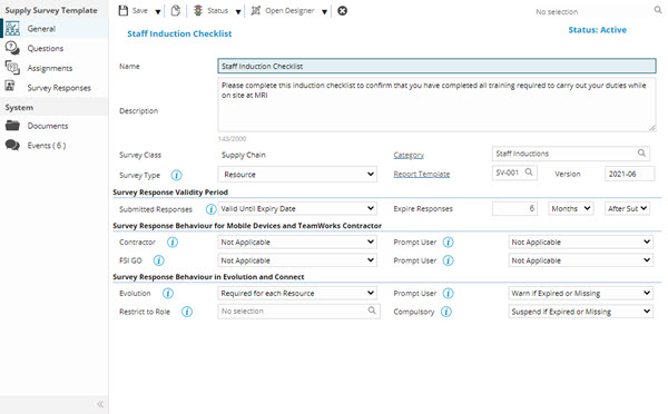 Once the Supply Survey Template is created it can be assigned to the relevant entities of the selected Survey Type