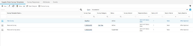 The link will open the Supply Chain Survey Template grid. It is a grid view which can be searched, sorted and customised as normal.