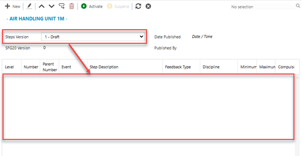 With the addition of Instruction Step Group versioning, only the latest Step Group version with either an Active, Draft or Suspended status will be displayed. Step Groups with a status of In Design or Superseded will not be displayed.