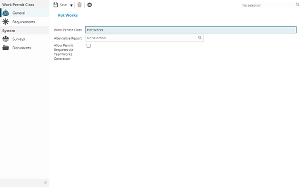 Once enabled against the Permit Classes entity, a new sub navigation will become available in the System sub navigation group of the Permit Classes input panel: