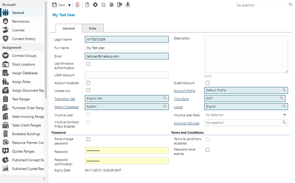 A User Account can also be assigned to other Entities and Modules within MRI Evolution. Not all Assignments will be available, as some are dependant on the Module being purchased.