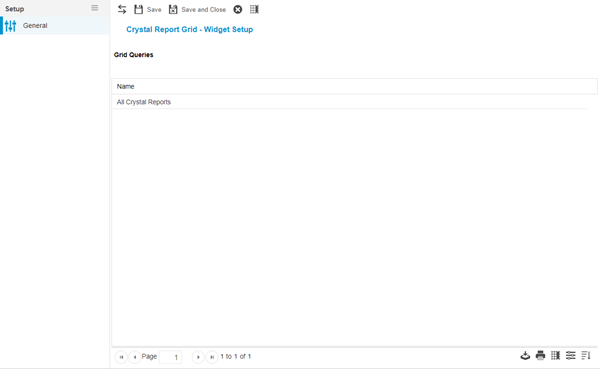 Select the Widget template : Crystal Reports Grid. Complete the fields and click Save . Click Configure Widget