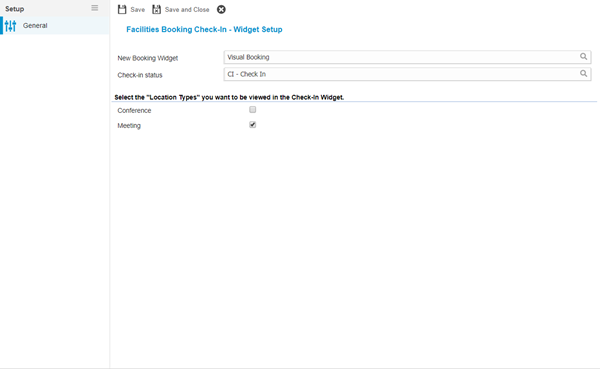 Select the Widget template : Facility Booking Check In. Complete the fields and click Save . Click Configure Widget