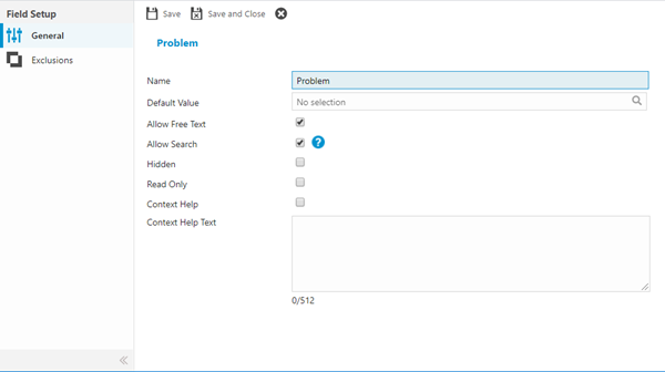 Complete the fields and click Save . Fields can now be assigned to the Helpdesk via the sub navigation Select Fields