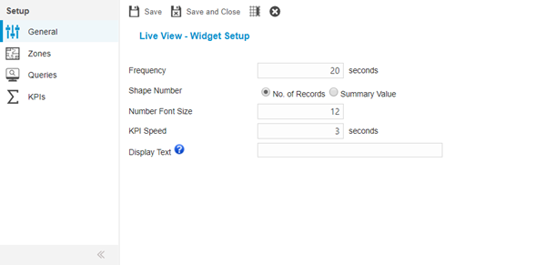 Zones need to be assigned to the Live View Widget. Multiple Zones can be assigned, the widget will move through each Zone showing summaries and KPIs