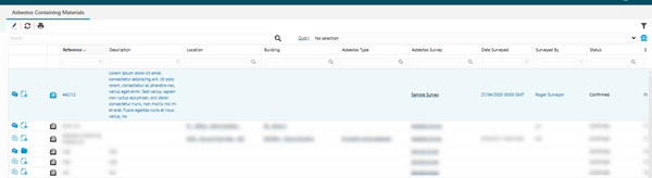 The link will open the Asbestos Register grid. It is a grid view which can be searched, sorted and customised as normal.