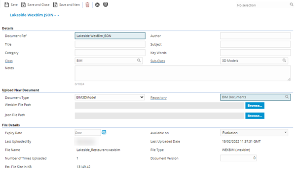 . A pop up window will appear which will allow the creation or amendment of a BIM Document.