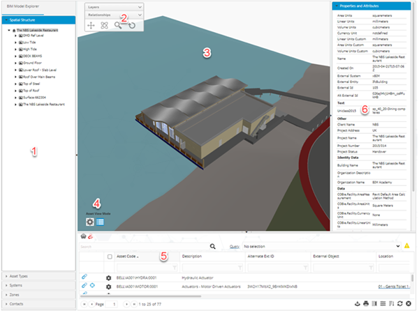 - Use the menu structure and filters to search for specific entities / areas within the BIM model