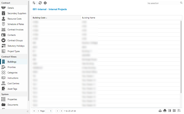 The link will open the Contract / Building grid. It is a grid view that can be customised and sorted as normal.