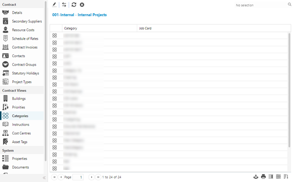 The link will open the Contract / Categories grid. It is a grid view that can be customised and sorted as normal.