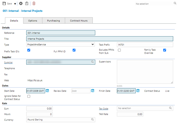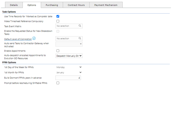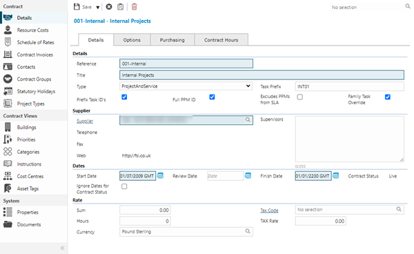 - Service: The Contract can be used to do Service works, such as Breakdown and PPM Tasks