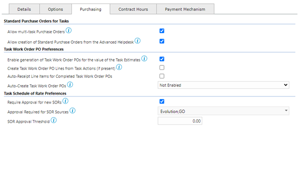 If enabled, Advanced Helpdesk users will be able to raise new Purchase Order requests to order the goods and services required to complete the Task.