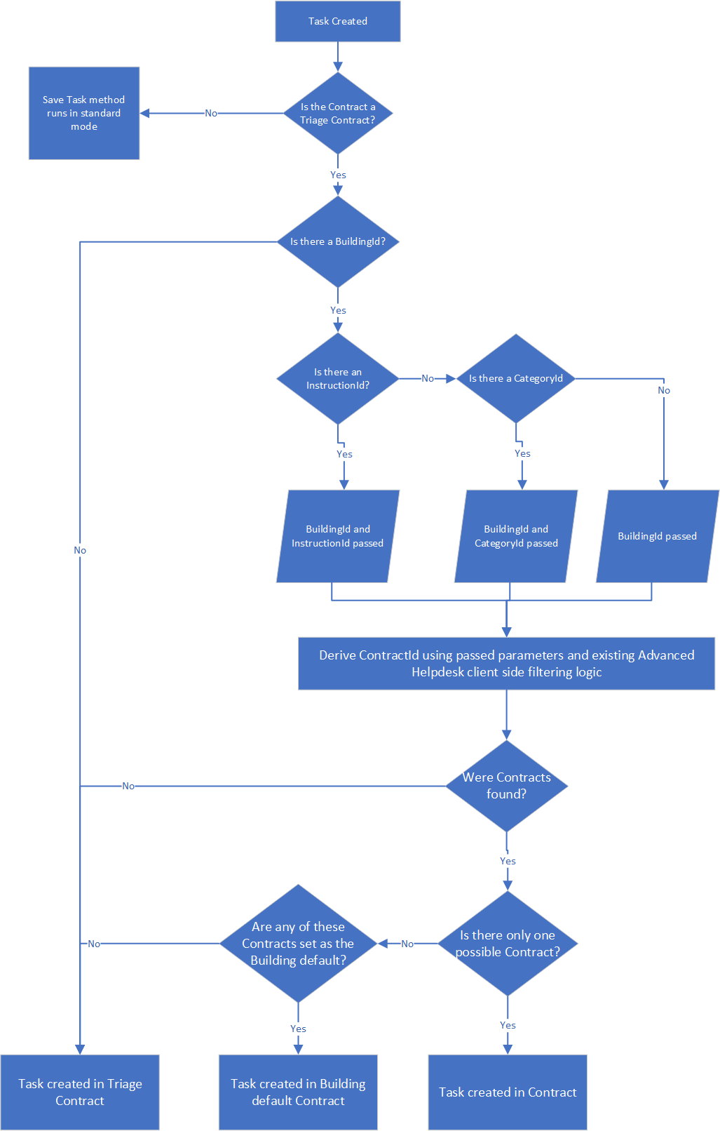 Whenever a Task is created, the first check is whether the Task's Contract has a Type of Triage Only, if it doesn't, the existing save Task method will apply.