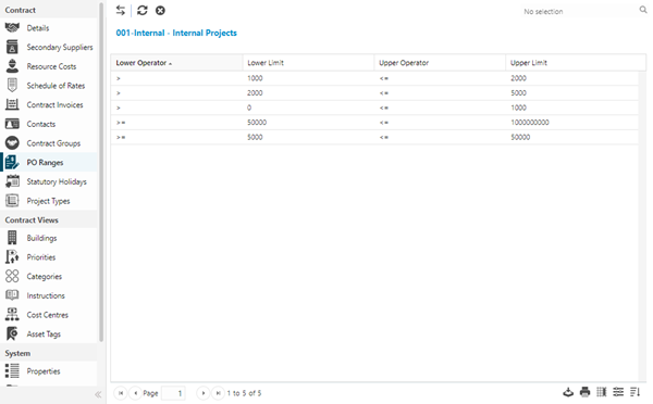Facilities > Contracts - PO Ranges