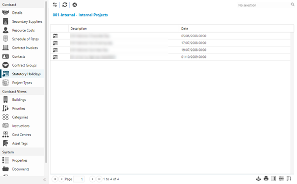 The link will open the Contracts / Statutory Holidays grid. It is a grid view that can be customised and sorted as normal.
