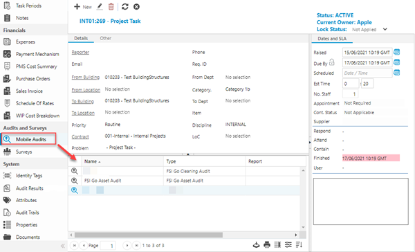 Mobile Audit | A read only field to display the Mobile Audit Name. The field label is a hyperlink to open the Mobile Audit directly. |