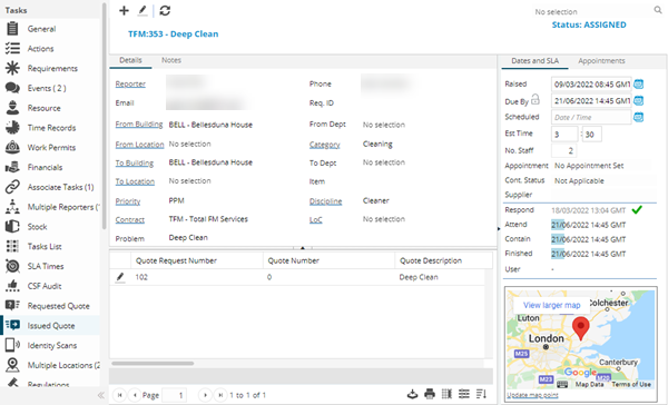 The link will open the Advanced Helpdesk - Issued Quotes Grid. It is a grid view which can be searched, sorted and customised as normal.
