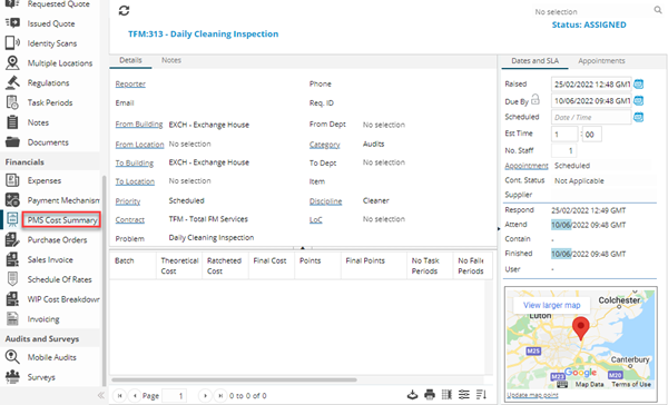 The PMS Task Cost Summary can be viewed from the Advanced Helpdesk. This allows a User to easily see any Payment Mechanism costs associated with the Task.