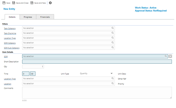 If Schedule Of Rates (SOR) are being used for financial calculations and invoicing, the required number of Schedule Of Rate Items must be added to the Task.