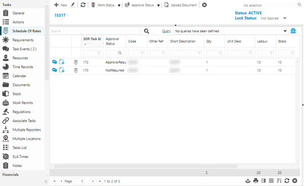 The link will open the Task / Schedule Of Rates grid. It is a grid view which can be searched, sorted and customised as normal.