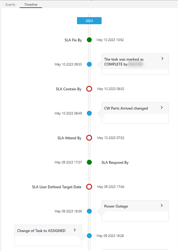 A new tab has been added to display Service Level Agreement target dates and Events related to the current Task in a linear graphical timeline.