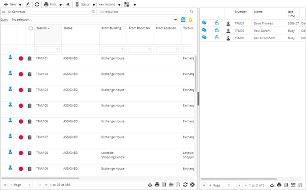The Integrated Services grid presents a view of both current Tasks and the Resources available to perform those Tasks. Resources can be assigned Tasks by dragging and dropping the Task onto the Resource.