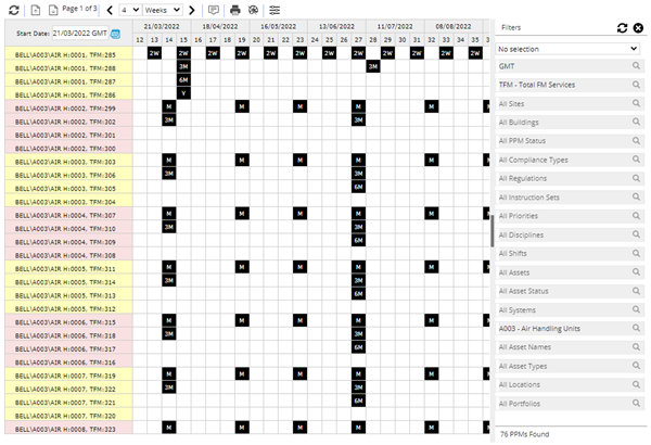 Note: If two or more PPMs occupy the same working week the “worst” colour will show on the Planner e.g. red, then orange, then green.
