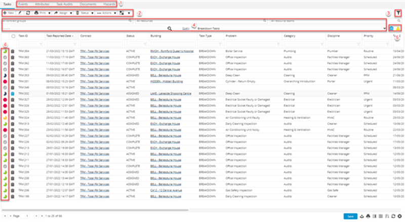 The Tasks grid, by default, displays all current Tasks including Tasks that are Unauthorised, Active, Assigned and Complete.