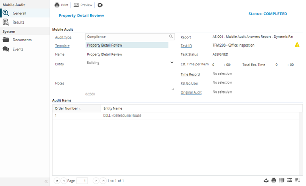 Notes | A read only field to display any notes related to the Mobile Audit. |