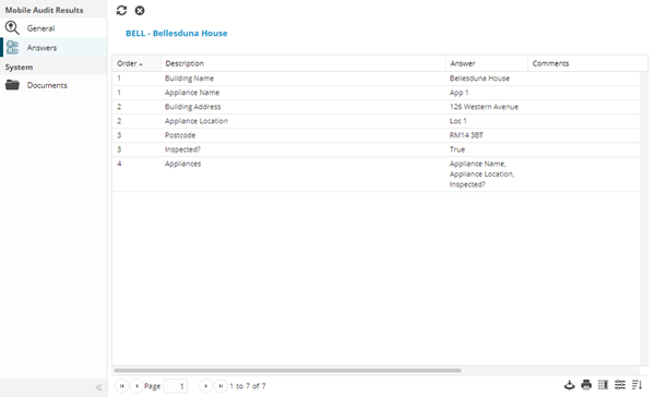 Answers Grid | The Answers grid displays the Mobile Audit Questions and the Answers provided |