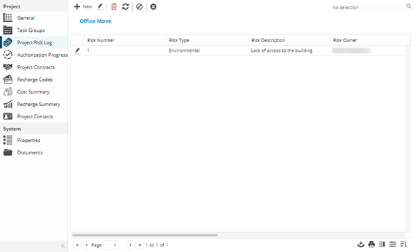 To add a new Project Risk Log click New , to edit an existing Project Risk Log click Edit