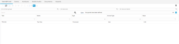 The Task WIP Grid shows all Tasks that have WIP cost Breakdown information.
