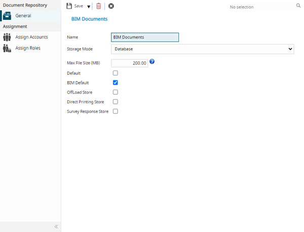When a Document Repository is created, it must be made available to User Accounts (It is also possible to assign repositories to newly created User Accounts)